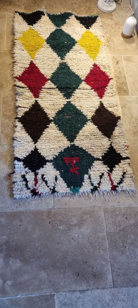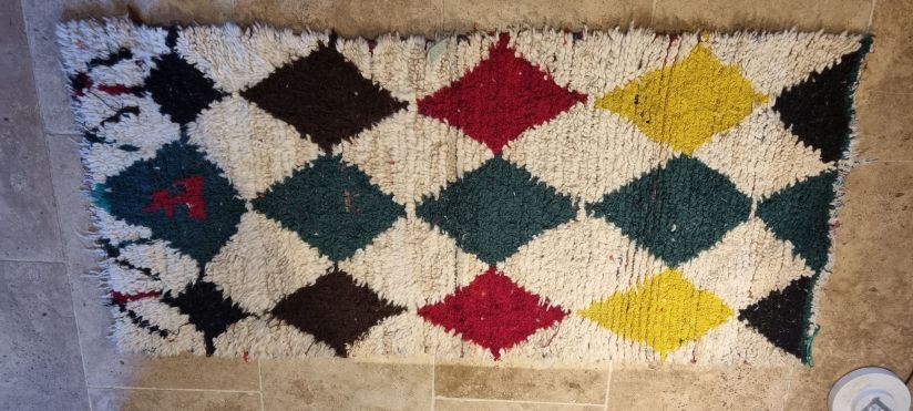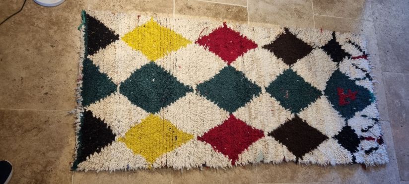 The word boucherouite means scrap or bit. These scraps are woven using a loom onto a wool back
